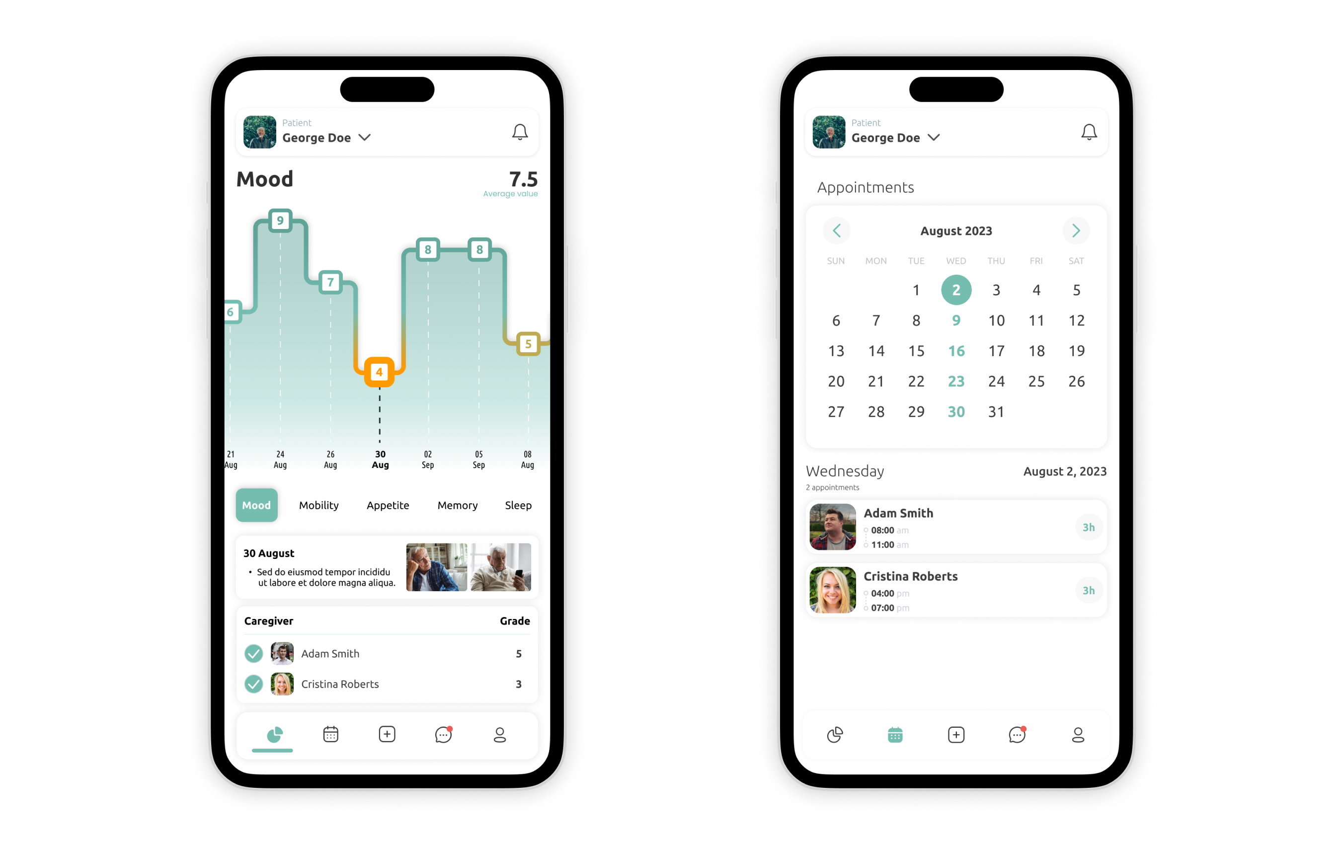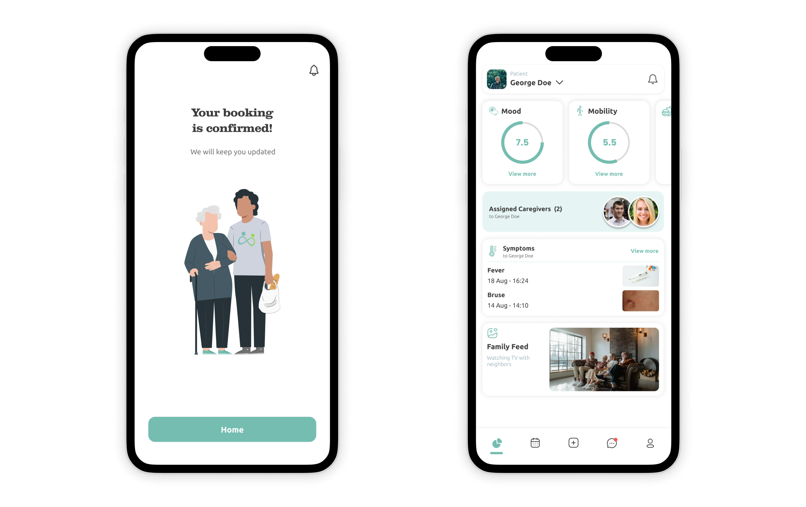 Separate apps for customers and caregivers, catering to distinct user needs and preferences.